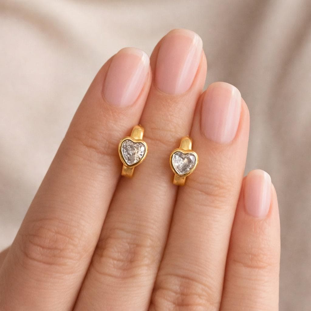 Uma argola de linhas clássicas com pendente em formato de coração, pensada para trazer delicadeza sem perder presença. O acabamento dourado valoriza a luz do rosto e acompanha com elegância desde composições discretas até ocasiões especiais.