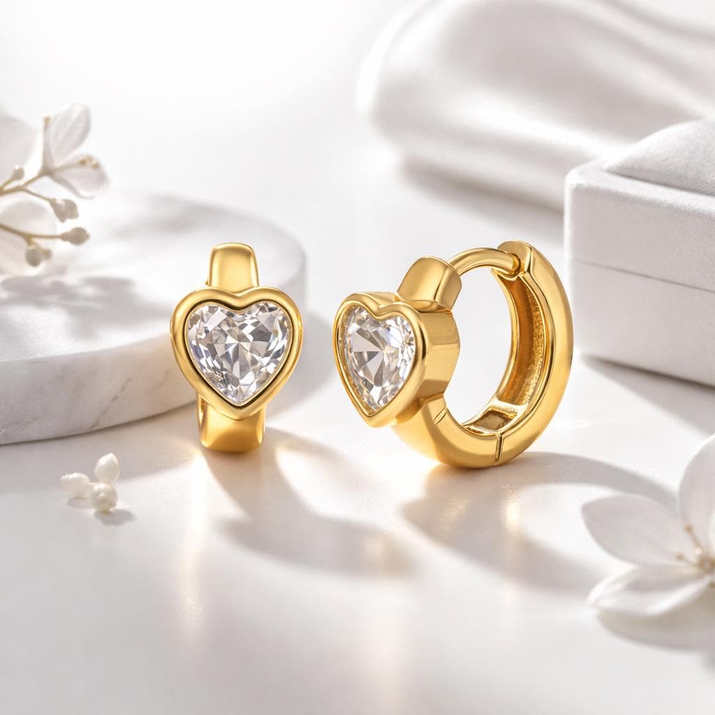 Uma argola de linhas clássicas com pendente em formato de coração, pensada para trazer delicadeza sem perder presença. O acabamento dourado valoriza a luz do rosto e acompanha com elegância desde composições discretas até ocasiões especiais.